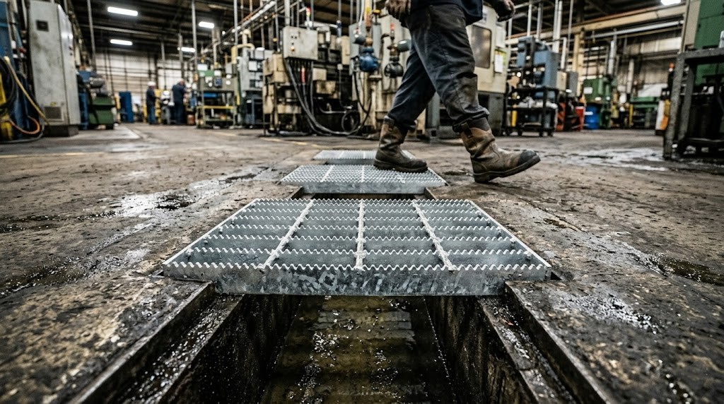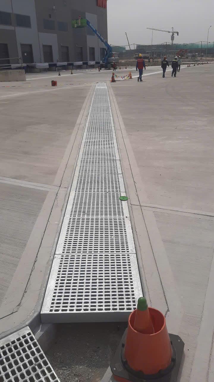 Ngoài ra, diện tích không gian mở của các ô lưới thép grating chiếm đến 80% tổng diện tích, nên khi có mưa lớn hoặc lưu lượng xả thải tăng đột biến, nước sẽ rút thẳng xuống mương gần như ngay lập tức, ngăn chặn tình trạng ngập úng cục bộ trên mặt bằng nhà xưởng hay đường phố.