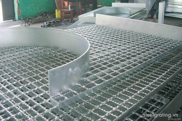 Tấm grating mạ kẽm thép được sản xuất từ thép có hàm lượng cacbon thấp như SS400,A36 kết hợp với thép xoắncây thép vuông 6×6 được xoắn tròn nhằm tạo khả năng chống trượt cho sản phẩm.
